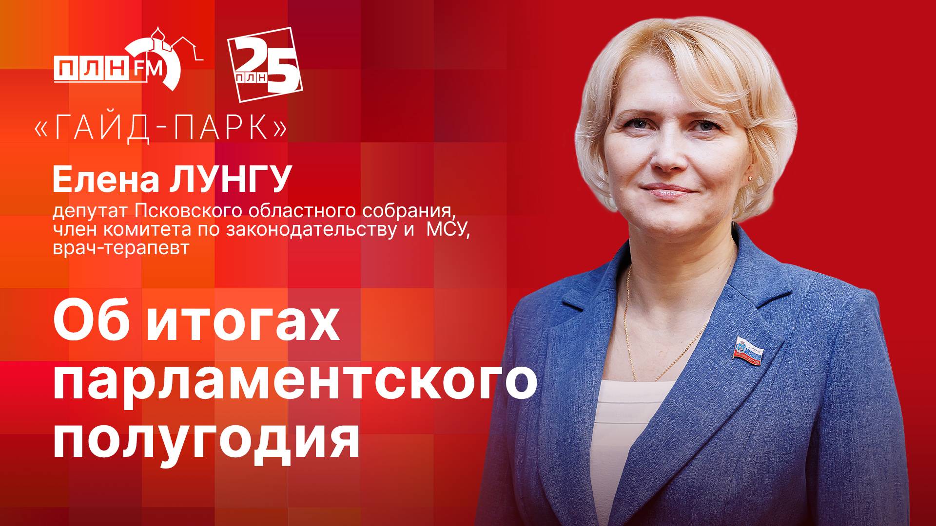 Гость: Елена ЛУНГУ, депутат Псковского областного собрания, член комитета по законодательству и МСУ, врач-терапевт Ведущий: Любовь Кузнецова