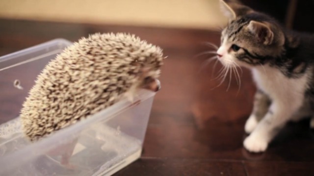 Знакомство пушистика и колючика.