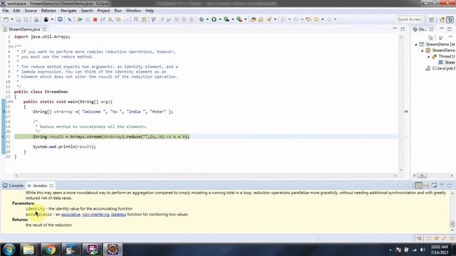 How to use Java 8 streams reduce method to concatenate the elements | Java 8 streams | Streams in Java 8 Java Source Code here: http://ramj2ee.blogspot.com/2017/08/how-to-use-java-8-streams-reduce-method.html Click the below link to download the code: https://drive.google.com/file/d/1HLfNz1V_wjrtBogDnpUwzTqpw1Q_CT7i/view?usp=drive_web Github Link: https://github.com/ramram43210/Java/tree/master/BasicJava/StreamDemo_reduce_concatinate_App Bitbucket Link: https://bitbucket.org/ramram43210/java/src/ed01c4e942c222c96b1953312e7a54d5a8556409/BasicJava/StreamDemo_reduce_concatinate_App/?at=master #Java #java8streams #java8stream #streams #Lambdaexpressions #JavaTutorial #JavaBasics #Lambdaexpressionsinjava #JavaLambdaexpressions #Lambdaexpression #Lambdaexpressioninjava #JavaLambdaexpression