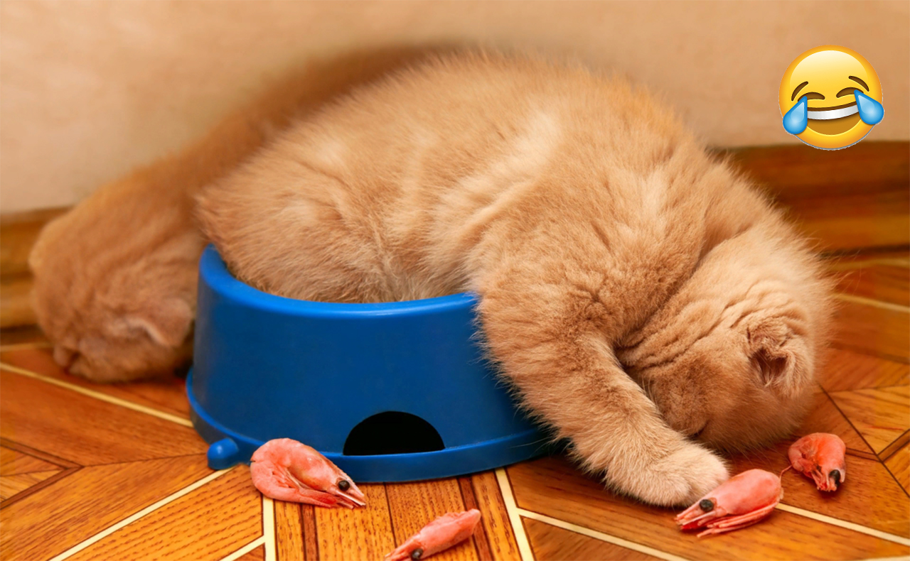 Как не уснуть в миске?)) ? Смешные коты и собаки) ? Приколы с животными) ? Попробуй не засмеяться