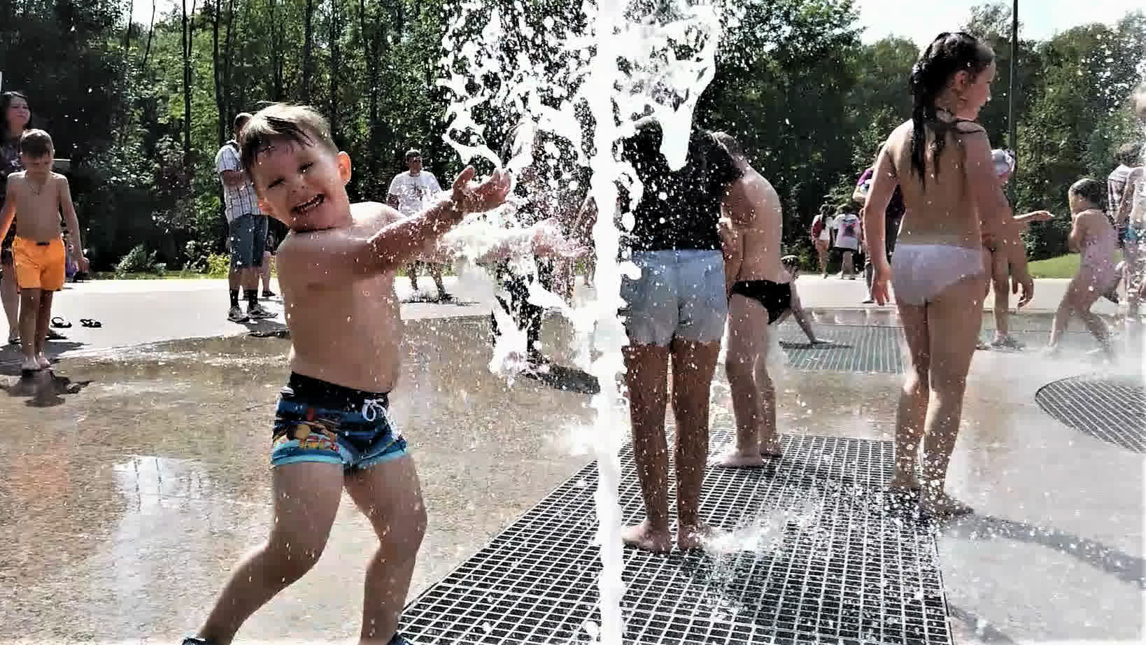 Дети купаются в фонтане! Трофимка первый раз и ему понравилось! #малыши #фонтан #лето #парк