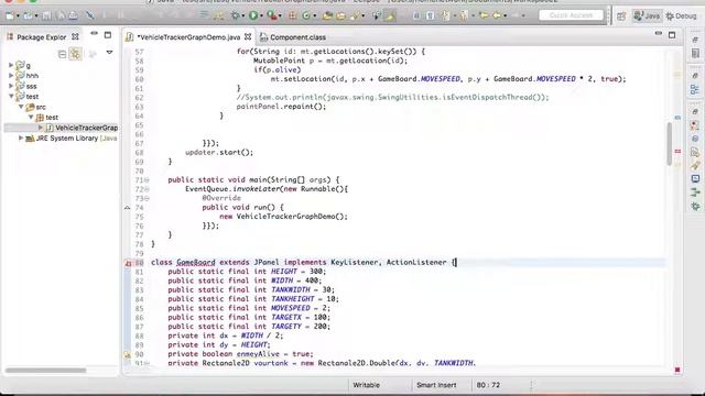 http://xyzcode.blogspot.com/2016/12/monitorvehicletrackerdemo.html In this section, we have both gui initialization code and animation code called from the swing event dispatch thread; we also modified the state variables of GameBoard so that they are published safely according to the standard of multi-threading code.