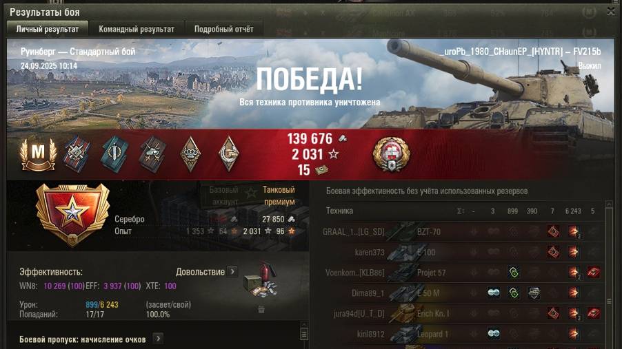 РУИНБЕРГ МАСТЕР на FV215b ОПЫТ: 1289 СУММАРНЫЙ УРОН: 7142 медаль ТАНКИСТ СНАЙПЕР на ПОБЕДУ 40%