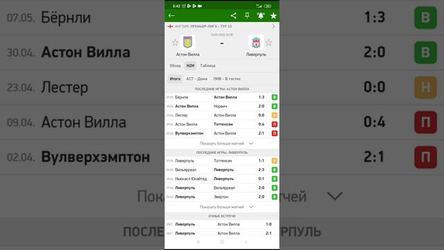 Прогноз Астон Вилла- Ливерпуль,10 05 22г