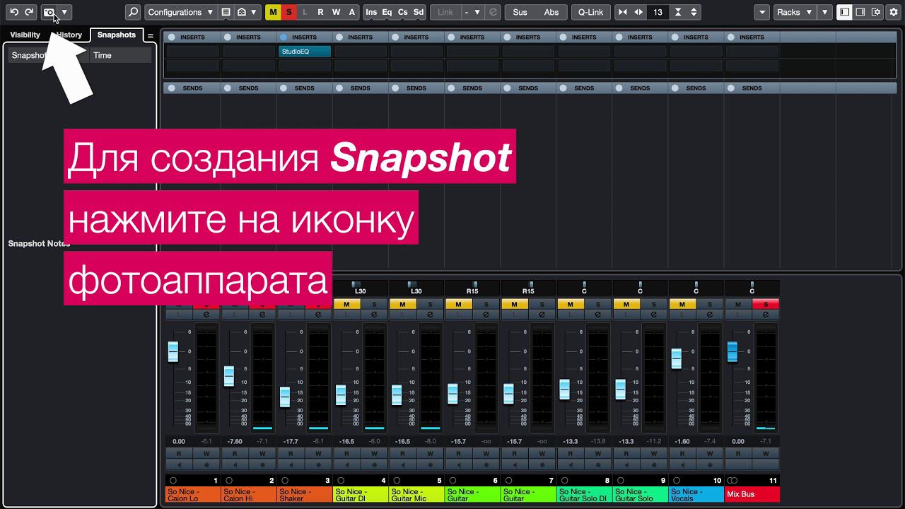 MixConsole Snapshots в Cubase