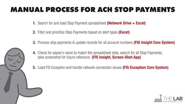 This video is another ACH stop payment bot The Lab implemented for a super regional bank.