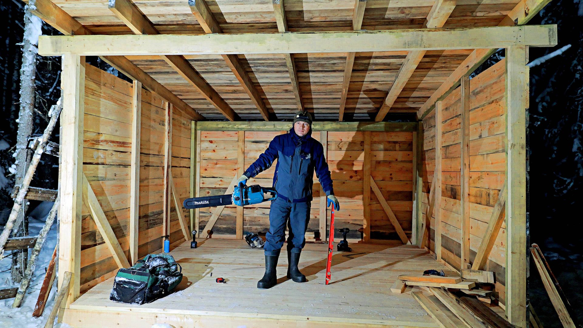 Пять дней в ТАЙГЕ. Укрытие от ВОЛКОВ. ПОГОДА ПОРТИТСЯ. Силы на ИСХОДЕ. Сделал, КРЫШУ. СТЕНЫ. ПОЛЫ.