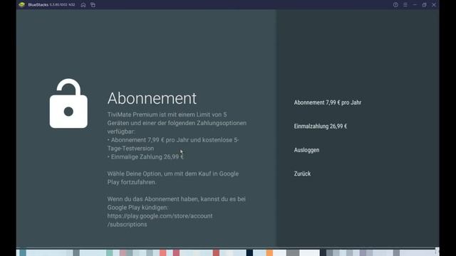 Tivimate freischalten und mit Paypal bezahlen.