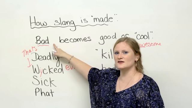 http://www.engvid.com Wow that is sick! Deadly car! Sick? Deadly? Learn how is slang actually "made" in English. Find out how and when to use words like bad-ass, wicked, sick, and da bomb! Then take the quiz at http://www.engvid.com/how-slang-is-made/