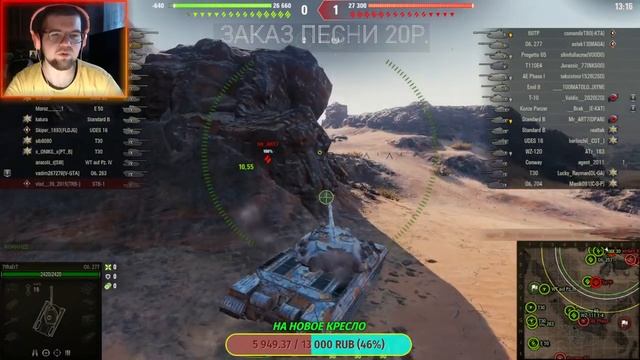 ?Донат ??? -- https://www.donationalerts.com/r/zhemych - ?Донат ??? -- https://www.donationalerts.com/c/zhemych (альтернативная сылка, если первая ссылка не рабочая) ???Донат ☀СКИНАМИ☀ -- https://steamcommunity.com/tradeoffer... ЗАДАНИЯ ?☀: СОГРЕТЬ СТРИМЕРА? - на улице +36 1)Надеть шапку - 98р. (10 минут) 2)Надеть шарф - 67р.(10минут) 3)КОМБО шапка - шарф - 179р. (10 минут) УЛУЧШИТЬ ЗДОРОВЯ СТРИМЕРУ?? 4)Стакан воды за один раз - 23р. 5)Сьесть дольку лука - 29р. 6)Сьесть зубчик чеснока - 65р. 7)Хлеб+Лук+Чеснок+Вода - 160р. 8)Приседаний 10 раз - 95р. CSGO?? 9)МОДЕРКА - 99.р 10)ЗАКАЗАТЬ ЛЮБИМУЮ ПЕСНЮ??? - 20 р. (в донате пишем названия вашей песни) БЕЗ ОЧЕРЕДИ: (в донате пишем ник-нейм) 11)1х1 --------- 50р. 12)ММ; НАПЫ - 100 р 13)ЧЕКНУТЬ ПРОФИЛЬ -- 30р. 14)Сыграть 1 ММ(соревновательный) ОНЛИ ПИСТАЛЕТЫ И БРОНЯ - 350р. Рулетка от SIRI - 110р. ☀сири выберет за Вас донат ☀ (1-14 только эти задания) ===КАТНУТЬ "НОН ПРАЙМ" - 75 рублей== СТРИЖКА/ПОКРАСКА ВОЛОС ВЫстрич по средине головы - 4,500р. ВЫстрич по средине головы и ходить так 5 дней - 13,000р. ПОД 0 - 8,543р. Окрас волос (белый цвет) - 25,000р. Волосы + брови 33,000р. (цвет белый) Окрас волос в яркий цвет (жолтый, орнаж, красный) - 50,000р. ?TIK-TOK - https://www.tiktok.com/@zhemych_live?... ⭐Insta - https://www.instagram.com/zhemych ? Характеристики Стримера: Зовут меня: ZHEMYCH - ЖЕНЯ Сколько мне лет: 25 лет Откуда я: Я из УКРАИНЫ Чем я занимаюсь: катаю с Вами в WOT Какие цели: Хочу поднять аудиторию которая будет всегда со мной) ?? Характеристики компьютера: Процесор - Intel Core i5-8400 Видеокарта - MSI PCI-Ex GeForce GTX 1660 Ventus XS 6G Жорсткий диск - Western Digital Blue 1TB 7200rpm Корпус - GameMax G529 Материнська плата - Gigabyte Z370P D3 SSD - Kingston SSDNow A400 240GB 2.5" SATAIII TLC Оперативна пам'ять - HyperX DDR4-2666 16384MB БП - GameMax GP-650 650W