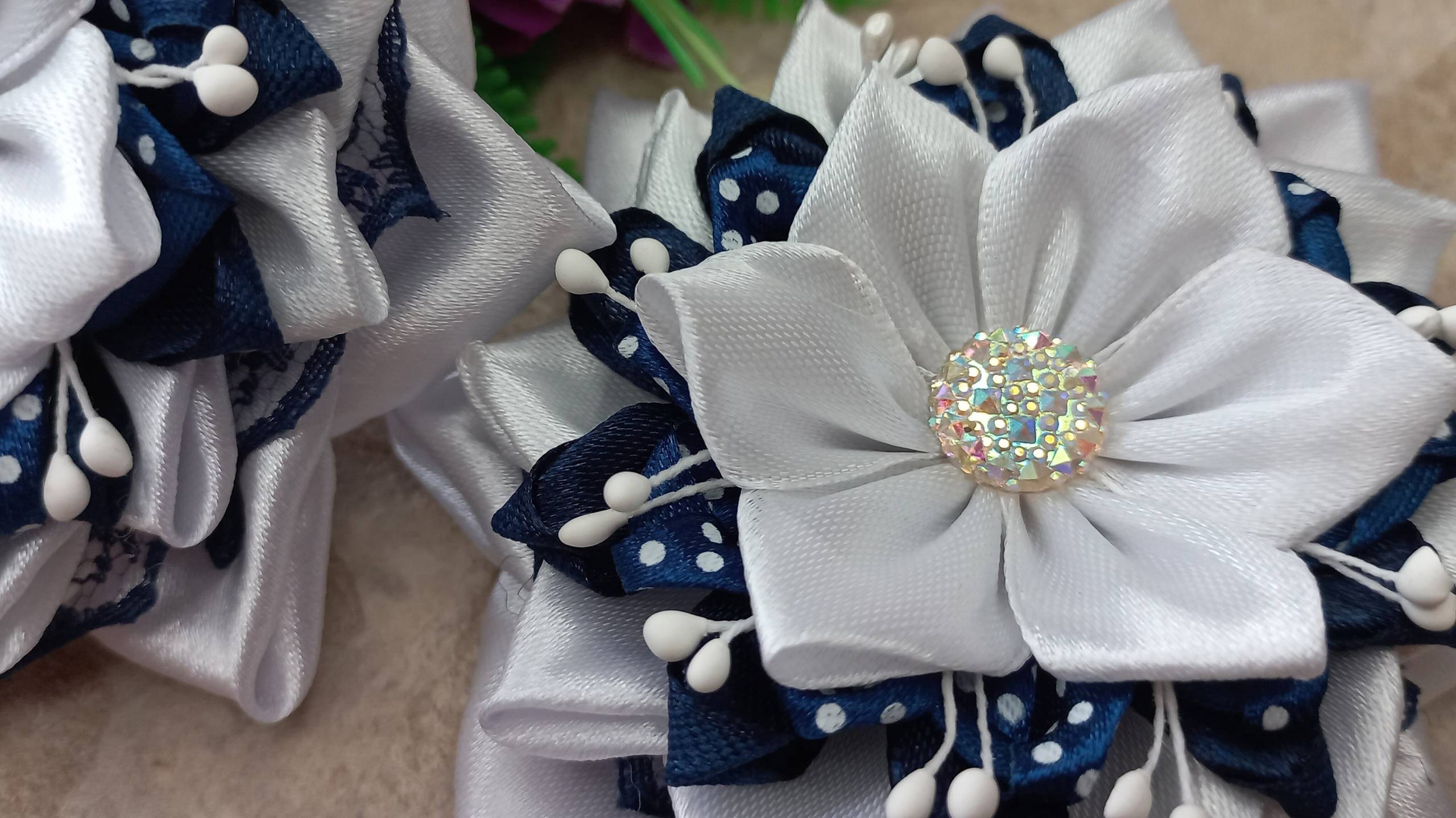 Бантик из атласной ленты на заколке своими руками