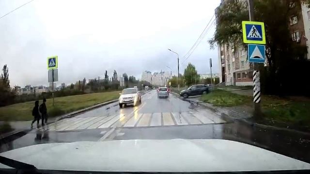 Подрезает пешеходов по левой полосе