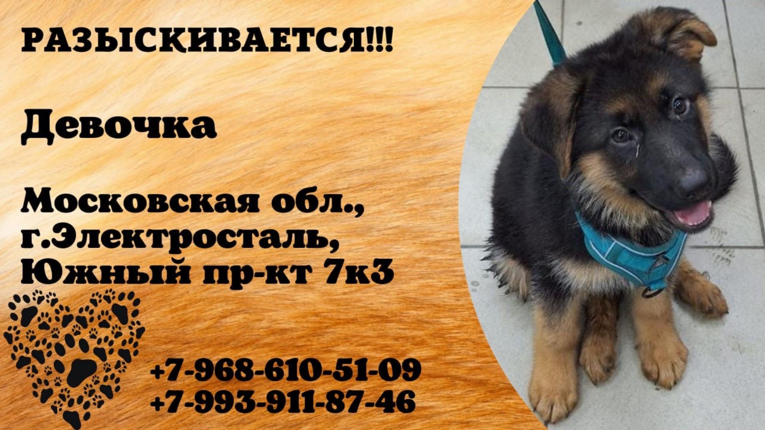 Пропала собака! Девочка. Московская обл., г.Электросталь.