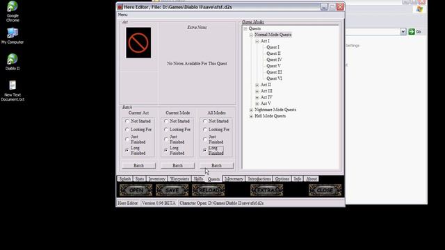 lvl,quests,weapons,mercenaries,waypoints.... .Where i write fearch i want to write search =)).And a site for download hero editor: http://www.moddb.com/games/diablo-2/downloads/hero-editor-full-v-096