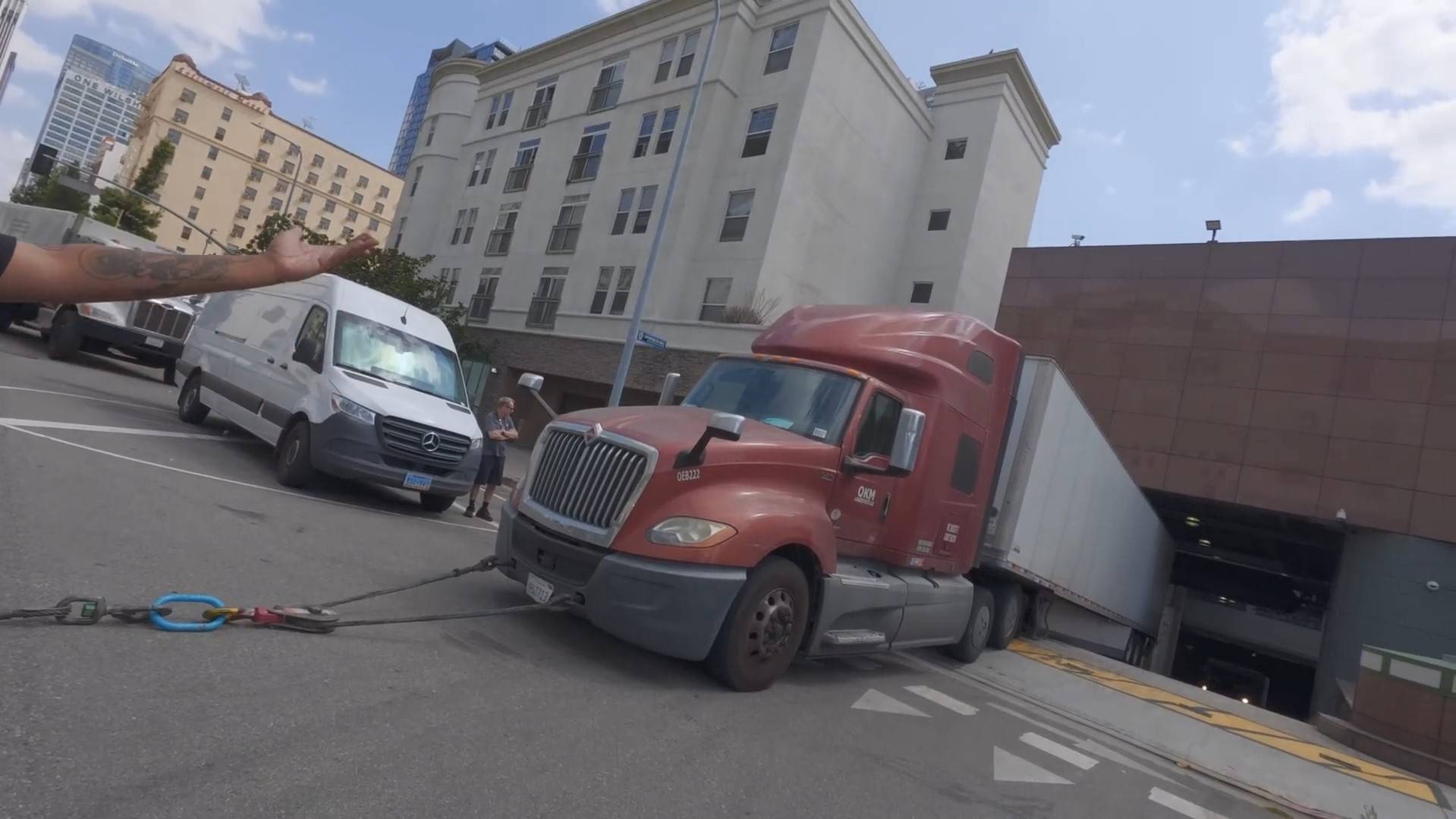 Трак застрял у выезжая из здания Федерального Резерва. И это не приемлемо! Парни с этим разберутся!!!
