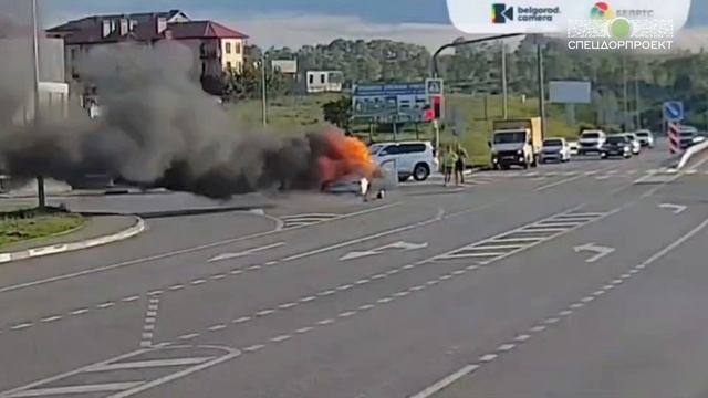 В Белгороде на ходу загорелся автомобиль с пассажирами