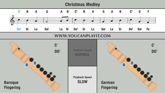 How to play a Christmas Songs Medley on the recorder. CHRISTMAS SONGS PLAYLIST ► https://www.youtube.com/playlist?list=PLQadz4_Sz9Cjgv3kkeSBMfzKyXlkEx2NA Support me with a channel membership (If you want!) ► https://www.youtube.com/youcanplayit/join Silent Night: 00:06 - Slow: 03:15 The First Noel: 00:45 - Slow: 04:32 Greensleeves: 01:04 - Slow: 05:10 We Wish You a Merry Christmas: 01:40 - Slow: 06:22 Deck the Halls: 01:59 - Slow: 07:01 O Christmas Tree: 02:24 - Slow: 07:50 Jingle Bells: 02:44 - Slow: 08:30 How to know which fingering is used by your recorder: - On a Baroque fingered recorder hole 4 is smaller than hole 5. - On a German fingered recorder hole 5 is smaller than hole 4. CONSIDER SUBSCRIBING! ► https://www.youtube.com/youcanplayit?sub_confirmation=1 . MORE TUTORIALS: ? Very Easy Songs: http://www.youtube.com/playlist?list=PLQadz4_Sz9CjQW3ukfB9ngoRoSWFbIoOI ? Classical Music: http://www.youtube.com/playlist?list=PLQadz4_Sz9Cg6ZbABdvwnMybG75S-YCt7 ? Popular Songs: http://www.youtube.com/playlist?list=PLQadz4_Sz9CiwQ-eKKKhg1xWbjFdcgoiC ? Meme Songs: http://www.youtube.com/playlist?list=PLQadz4_Sz9CjYYAyg7XvdbGhj_O6jgseM ? Traditional Music: http://www.youtube.com/playlist?list=PLQadz4_Sz9CjbrPMsXHeT7-Ov_-l2wuZQ ? Movie Songs: http://www.youtube.com/playlist?list=PLQadz4_Sz9CiFhIKfv79i_ZszgojZaBwF ? TV Themes: http://www.youtube.com/playlist?list=PLQadz4_Sz9Cg3MITO3TpUwwdHjWAzuJX4 ? Christmas Songs: http://www.youtube.com/playlist?list=PLQadz4_Sz9Cjgv3kkeSBMfzKyXlkEx2NA ? Video Games: http://www.youtube.com/playlist?list=PLQadz4_Sz9CgwECN3FVPxNDfZ1llR3TIx EXTRA LINKS: ● Website: http://www.youcanplayit.com ● Twitter: http://twitter.com/youcanplayit ● Facebook: http://facebook.com/youcanplayit