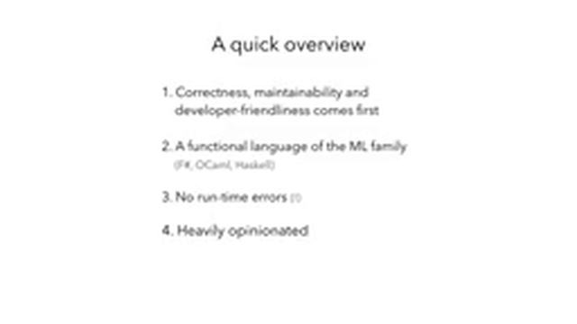 By Erik Wendel Speaker Abstract: In times where a jungle of JavaScript frameworks wants to solve every conceivable problem in web app development, creating headaches and javascript fatigue in the process, Elm offers a different approach. Elm is a functional programming language that you can use instead of JavaScript — or alongside it. It builds on the concepts virtual dom and unidirectional data flow popularized by React and Redux, but with a sound typesystem, built-in immutability, and an amazing compiler that catches errors before you even run your code. Simply put, Elm is a great language that will make your backend team jealous (unless they're already on the very similar F#). In this talk you'll see how Elm works and learn how to use it to build a web app. I will emphasize the advantages and disadvantages it brings compared to the traditional JavaScript tech stack used at my most recent project. This talk is not aimed at experienced functional programmers coming from languages such as Haskell, but rather JavaScript developers seeking a more functional approach in their daily work. It serves both as a introduction to Elm and typed, ML-style functional programming. Delivered at ForwardJS January 13th, 2018 San Francisco, CA https://forwardjs.com
