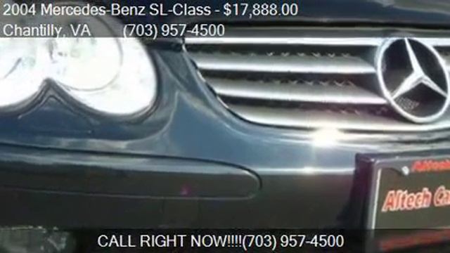 This 2004 Mercedes-Benz SL-Class SL500 2dr Convertible is for sale in Chantilly, VA 20152 at ALTECH CARS LTD. Contact ALTECH CARS LTD at http://www.carsforsale.com/vehicle/details/3-3840099 Engine: 5.0L V8 Transmission: Automatic 7-Speed Color: Black Mileage: 72495 Contact ALTECH CARS LTD 25350 PLEASANT VALLEY RD # 140 - 142 Chantilly, VA 20152 to test drive this 2004 Mercedes-Benz SL-Class SL500 2dr Convertible today.