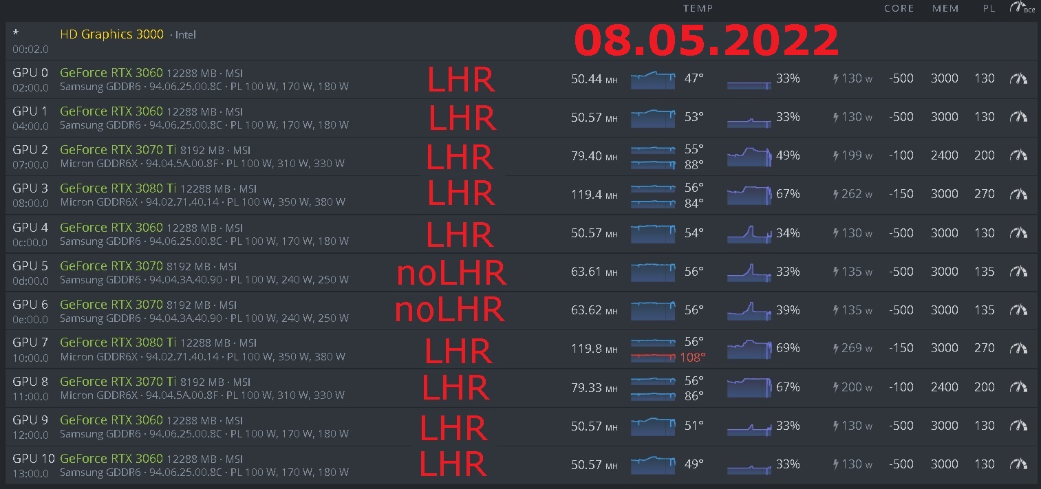 UnLock LHR 100% - разгон и настройка для видеокарт RTX 3060, 3070ti, 3080ti