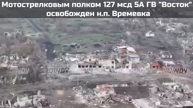 Группировкой "Восток" освобождён населённый пункт Времевка Штурмовыми подразделениями мотострелкового полка 127 мсд 5 армии группировки "Восток" установлен российский флаг на здании по улице Партизанская перед мостом через реку Мокрые Ялы. Дальневосточники закрепляются на позициях