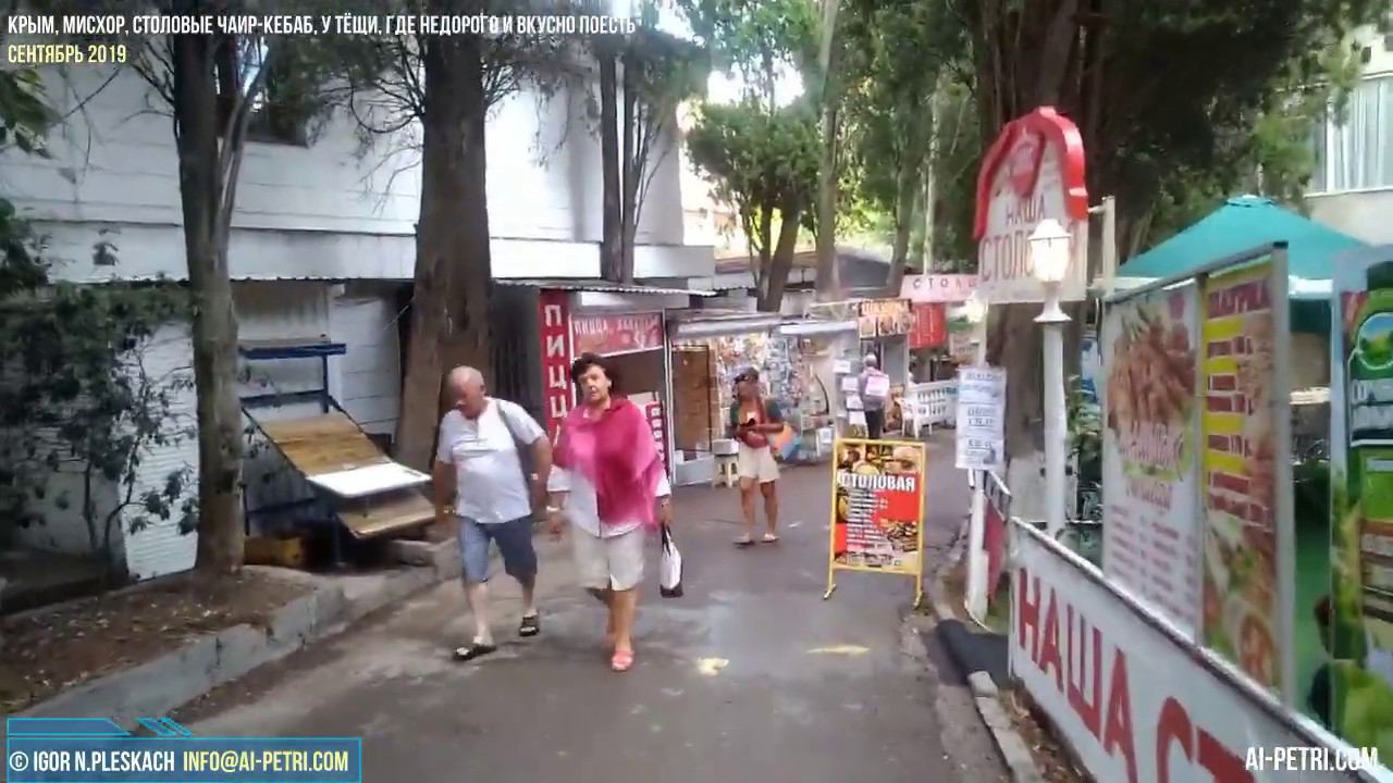 Источник: http://ai-petri.com/forum/index.php?/topic/1175-недорого-вкусно-поесть-с-ребенком-в-мисхоре-столовые-чаир-кебаб-у-тёщи-сентябрь-2019/ За прошедшие 2 года в Мисхоре на выходе из Мисхорского парка к набережной Мисхора появились несколько новых столовых домашней еды. Бюджетные цены, "детский стол", вкусно и недорого - важные параметры для большинства отдыхающих в Крыму. Этим параметрам в целом соответствуют и новые 2 столовые - "Чаир-Кебаб" и "У тёщи". Ранее, до 2018 года здесь пользовалась бешеным спросом единственная "Столовая №1" (хозяина зовут Сос), мы даже делали с ним фотосессию в 2015 году. Сос любезно согласился показать нам процесс приготовления и подачи на стол наших любимых люля-кебабов, шашлыка и отбивных - вот ссылка http://ai-petri.com/ai-petri/267-lyulya-shashlyk-kofe-vkusno-poest-v-mishore-i-yalte.html Но с прошлого года здесь появились указанные выше столовые, ассортимент похожий, цены нормальные (хотя у каждого свои представления о ценах и "нормальности домашней еды" пищи). НАШИ ПРОЕКТЫ: 1️⃣ МЫ-ВОЛОНТЕРЫ - http:/мы-волонтеры.рф 2️⃣ АЙ-ПЕТРИ - Южный берег Крыма - http://ai-petri.com 3️⃣ ФОРУМ Крыма - http://ai-petri.com/forum/ 4️⃣ COMPAS Info - http://compas.info МЫ В СОЦИАЛЬНЫХ СЕТЯХ: ✔️ Фейсбук - https://www.facebook.com/geoniks ✔️ "Любимый Крым" наша группа в Facebook - https://www.facebook.com/groups/aipetri/ ✔️ ВКонтакте - https://vk.com/george_nick ✔️ Twitter - https://vk.com/george_nick E-MAIL: info@ai-petri.com