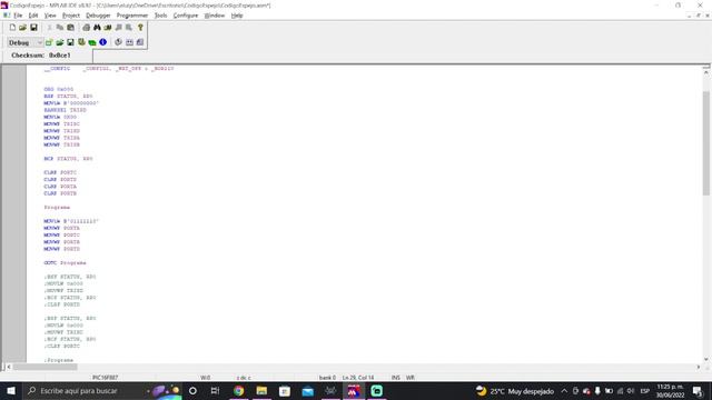 Proteus encender los leds de los puertos A,B,C,D pic 16f887