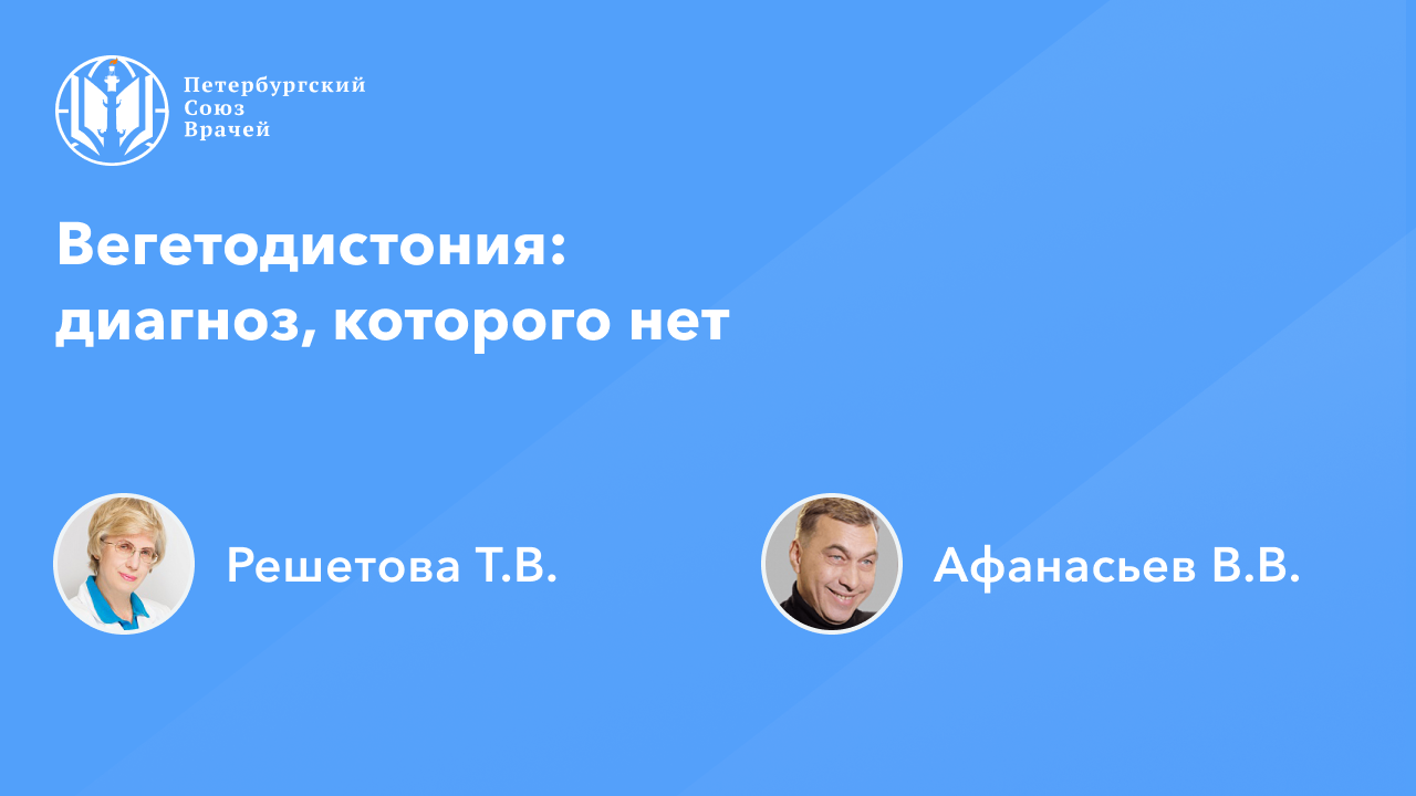 Сайт: https://www.spb.doctor Видеозапись онлайн-семинара "Вегетодистония: диагноз, которого нет". Дата проведения: 24.03.2022, 20.00 Страница мероприятия: https://www.spb.doctor/info/22032420 Программа: 1. Вегетодистония: диагноз, которого нет Решетова Татьяна Владимировна 2. Возможности коррекции постковидной астении Афанасьев Василий Владимирович Ответы на вопросы О семинаре: В онлайн-семинаре будет произведена систематизация знаний об основных понятиях и терминах, характеризующих синдром вегетативной дисфункции. Подробно будут рассмотрены клинические проявления различных нарушений вегетативной нервной системы: постоянные и кризовые, особенности их формирования и прогноза. Будут подробно разобраны вопросы ранней и доступной врачам общей медицинской практики, экспресс-диагностики, и дифдиагностики расстройств, приводящих к нарушениям функций вегетативной нервной системы. Будут освещены особенности их разнообразной клиники в регуляции разных систем и органов. Будут представлены особенности формулировки диагноза с учетом требований МКБ-10, страховых компаний. Подробно будут разобраны принципы лечения с учетом формирования вегетодистонии. Будут проанализированы диагностика и разная лечебная тактика при панических атаках (при паническом расстройстве) и проявлениях соматоформной вегетативной дисфункции, современные методы оказания неотложной помощи при панической атаке ("вегетативном кризе").