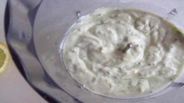 Салат с куриными сердцами и сырным соусом