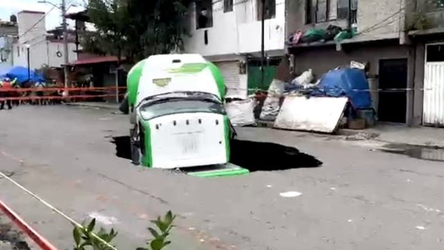В Мехико грузовик провалился под дорогу
