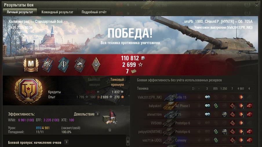 КАЛИНИНГРАД МАСТЕР на Об. 705А ОПЫТ: 1199 СУММАРНЫЙ УРОН: 5836