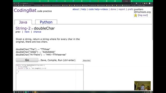 CodingBat String-2 "doubleChar" walkthrough