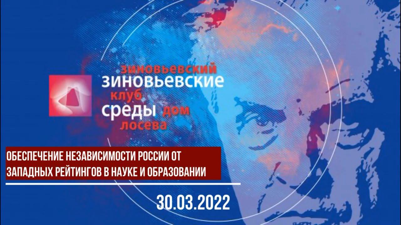 ЗИНОВЬЕВСКИЕ СРЕДЫ. «Обеспечение независимости России от западных рейтингов в науке и образовании».