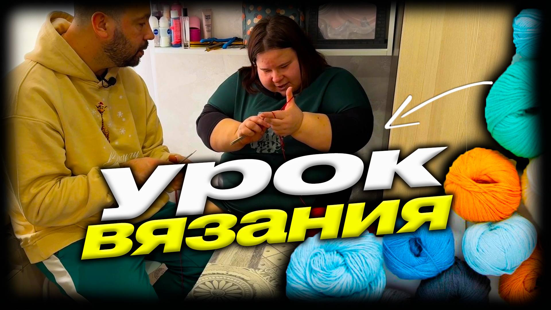 Урок вязания. Катя учится вязать. Первые шаги. Обучение необычной семьи.