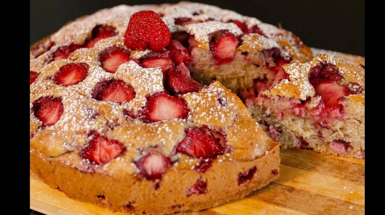 Шарлотка с клубникой 🍓! Очень сочная, вкусная! Рецепт выручалочка!