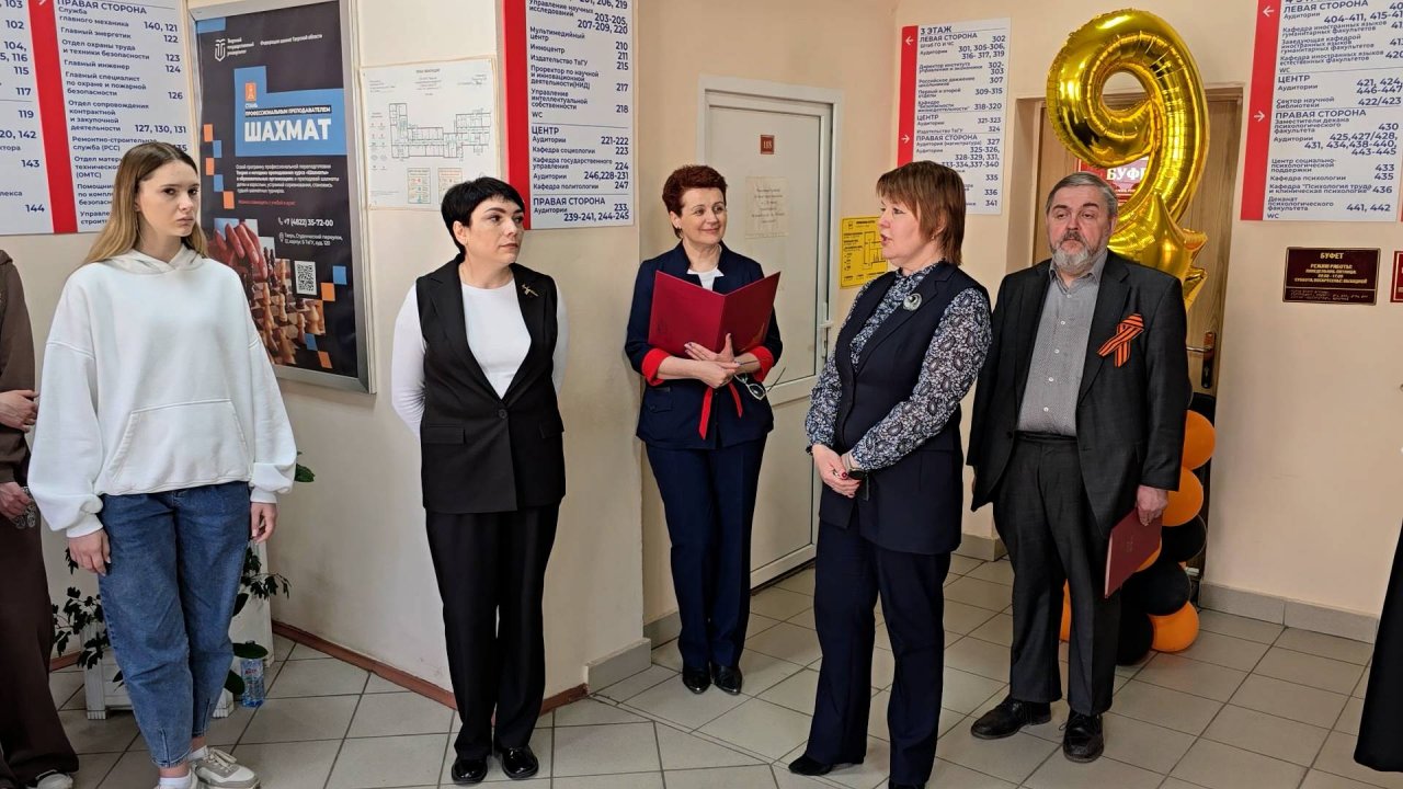 В корпусе Б открыты мемориальные доски в память о преподавателях факультета психологии и сотрудниках Инновационного центра ТвГУ — участников Великой Отечественной войны На торжественной церемонии открытия выступили проректор по общим вопросам Тверского государственного университета Елена Николаевна Васильева, декан факультета психологии Ирина Анатольевна Бариляк и начальник отдела интеллектуальной собственности управления научных исследований (УНИ) Игорь Николаевич Межеумов. В частности, Елена Николаевна отметила, что имена, нанесенные на доски, — имена Георгия Викторовича Телятникова, Алексея Федоровича Шикуна, Ефима Александровича Лурье — «вписаны золотыми буквами не только в историю Тверского государственного университета, но и в целом в историю высшего образования в России, в историю развития психологии, в историю развития науки». В заключение торжественной церемонии студенты факультета психологии исполнили песню о войне. #День_Победы_ТвГУ #ТвГУ_помнит #Психфак_ТвГУ #ИнноЦентр_ТвГУ