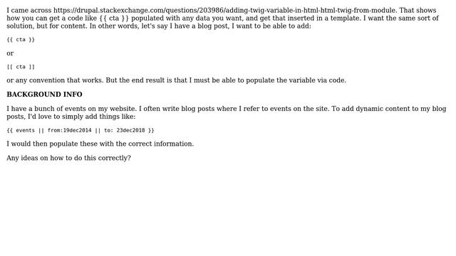 Drupal: How to use short codes with arguments? Helpful? Please support me on Patreon: https://www.patreon.com/roelvandepaar With thanks & praise to God, and with thanks to the many people who have made this project possible! | Content (except music & images) licensed under CC BY-SA https://meta.stackexchange.com/help/licensing | Music: https://www.bensound.com/licensing | Images: https://stocksnap.io/license & others | With thanks to user leymannx (drupal.stackexchange.com/users/15055), user coderama (drupal.stackexchange.com/users/2359), and the Stack Exchange Network (drupal.stackexchange.com/questions/270899). Trademarks are property of their respective owners. Disclaimer: All information is provided "AS IS" without warranty of any kind. You are responsible for your own actions. Please contact me if anything is amiss at Roel D.OT VandePaar A.T gmail.com
