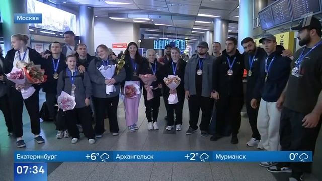 Встреча сборной России по дзюдо в аэропорту после Чемпионата Европы в Черногории