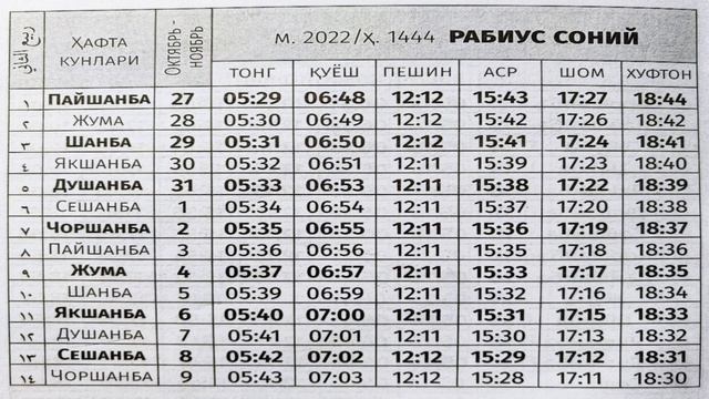 НОЯБР ОЙИ НАМОЗ ВАКТЛАРИ 2022 // NOYABR OYI NAMOZ VAQTLARI 2022