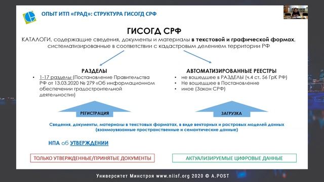 Секция Всероссийского практического семинара "Градостроительная деятельность-2020" Модератор: Ахметов Айрат Рауфович - Руководитель направления информационного моделирования в градостроительстве в ЛАНИТ-Интеграция 1. Тема: «Цифровые инструменты градостроительного проектирования от BIM к CIM» Спикер: Ахметов Айрат Рауфович - Руководитель направления информационного моделирования в градостроительстве в ЛАНИТ-Интеграция 2. Тема: «Плотность и мобильность: обеспечение баланса при реализации инфраструктурных городских проектов» Спикер: Антонов Александр Владимирович - Эксперт по градостроительству и территориальному планированию Союза Архитекторов России 3. Тема: «Информационные системы в градостроительной деятельности» Спикер: Береговских Анна Николаевна - руководитель ИТП «Град», председатель Совета Национальной гильдии градостроителей, член-корреспондент МААМ, советник РААСН 4. Тема:«Решения Bentley Systems для инфраструктурных проектов и градостроительной деятельности» Спикер: Степанов Виктор Владимирович – Менеджер по продажам, Bentley Systems 5. Тема: «Компьютерное транспортное моделирование как часть городского планирования Казани» Спикер: Кадыров Тимур Эрнестович - Заместитель главного архитектора г. Казань В дискуссии приняла участие Прокофьева Татьяна Георгиевна - заместитель директора ГБУ Фонд Пространственных данных Республики Татарстан Обучение. Курсы, семинары, тренинги. Повышение квалификации и профессиональная переподготовка Университет Минстроя - https://niisf.org Институт управления и информационного моделирования - https://niisf.org/instituty-universit... Предстоящие вебинары - https://niisf.org/obuchenie/format-ob... Страница на Facebook - https://www.facebook.com/niisf Сотрудничество, обучение, спонсорство: +7 (495) 585 73 20 info@niisf.org
