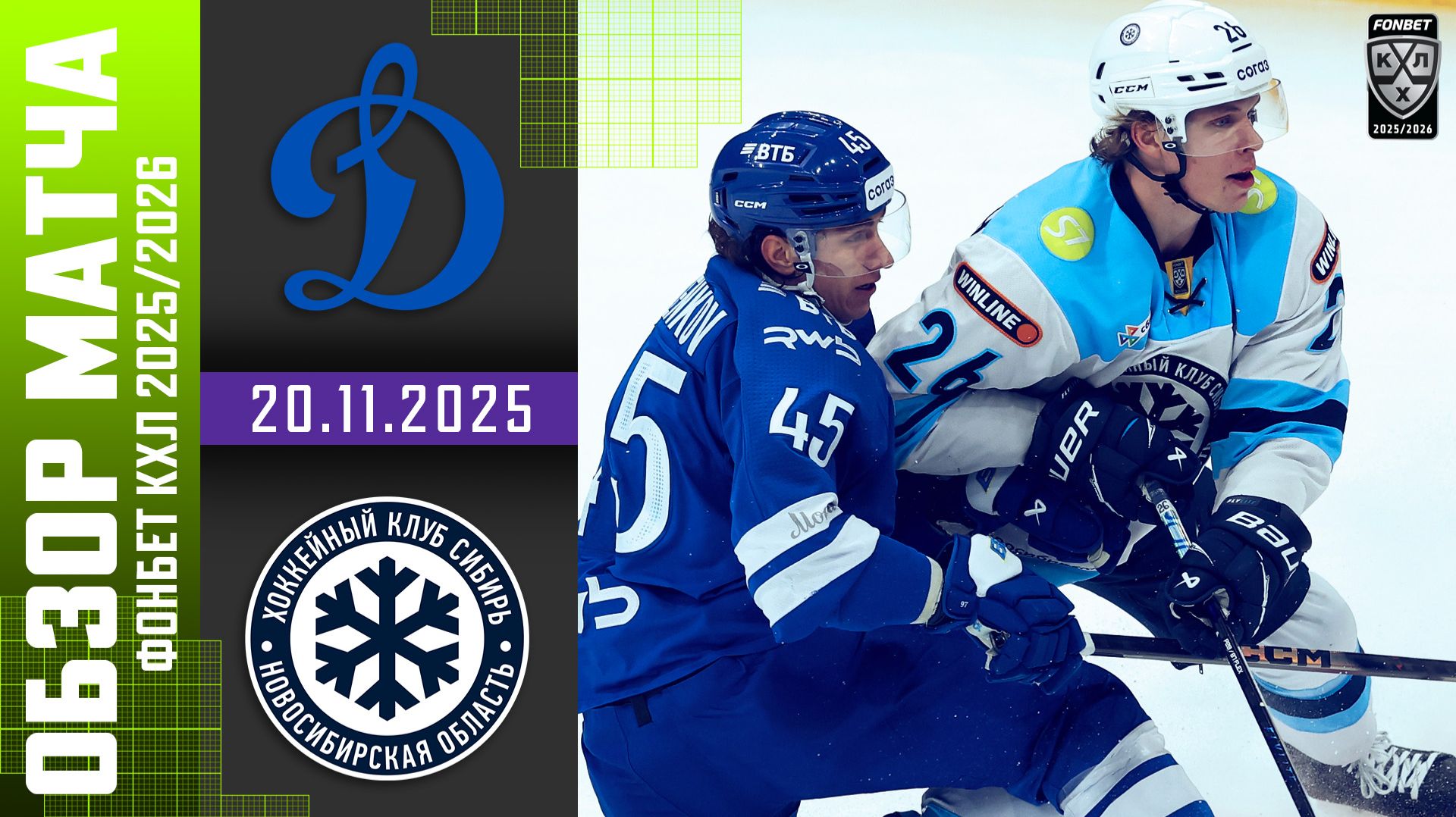 ДИНАМО МОСКВА – СИБИРЬ | Обзор матча Фонбет КХЛ сезон 2025/2026 | 20.11.2025