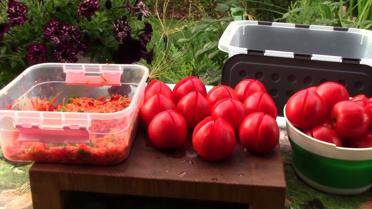 Быстрый рецепт мариновки помидоров с начинкой