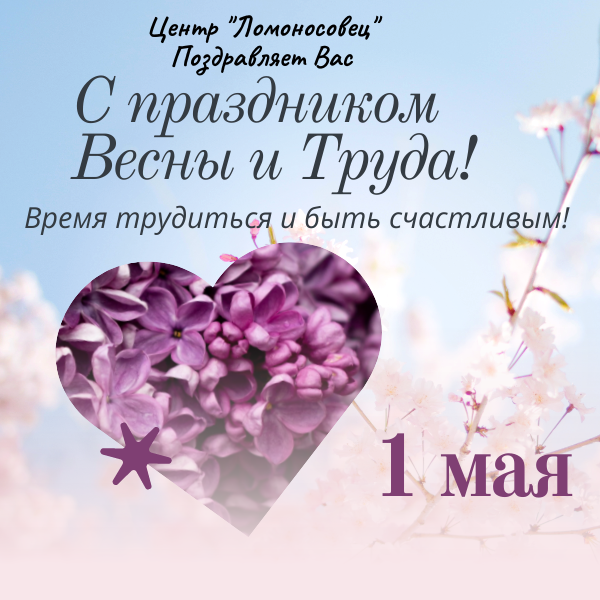 Дорогие Друзья ! Центр «Ломоносовей» Поздравляет Вас с Праздником 1 МАЯ Традиция празднования Первомая возникала еще в 1886 году, когда первого мая тысячи рабочих вышли на улицы с требованием восьмичасового рабочего дня. В этот день погибло огромное количество человек, практически все организаторы демонстрации были приговорены к казне. Именно в память об этом дне 1 мая стало Днем солидарности трудящихся. В наше время значение праздника изменилось. Сейчас он ознаменовывает день весны и труда. Солнце греет все ярче и жарче, в душе играют веселые мотивы. Желаем взять метелку, топорик, грабли, вилы, и хорошенько пойти потрудиться, сделать наш мир чище и приятней. Чтобы тепло майского солнышка, озарило наши чистые улицы, счастливые лица людей и яркие краски убранного, обновленного мира. Желаем, чтобы это праздничное настроение, молодецкий азарт, трудовые порывы и добрая улыбка оставались с вами навсегда, делая жизнь невероятно яркой, динамичной и насыщенной. С Первомаем! С Уважением, Центр «Ломоносовец» Центр Профессионального Развития "Ломоносовец" По адресу: Москва, Керамический проезд дом 45, корпус 1. Или по Телефону: +7 (495) 505-03-54 +7 (925) 505-03-54 #онлайнобучение #обучениемосква #английскийязык #английскийонлайн #уроканглийского #занятияонлайн #дополнительноеобразование #курсы #курсыдлявзрослых #английскийснуля #английскийязыкснуля #хочунакурсы #гдеучится #бесплатно #быстро #длядетей #интересно #урокирисования #риторика #ораторскоемастерство #ланлшафтныйдизайн #танцы #компьютер #ломоносовец #дегунино #красиво #полезнознать #хочувсезнать #долголетие #московскоедолголетие #московскоедолголетиеэтомы #пенсионер #пенсионеры #учимязыкионлайн #занятияонлайн #цсо #тцсо #дтсзн #дтсзнмосквы #мсц #мфц #пенсионныйвозраст #пенсия55 #пенсия60 #дополнительноеобразование #курсы #курсыдлявзрослых #обучениепенсионеров #серебряныйвозраст #пожилойчеловек #московское_долголетие#флористика