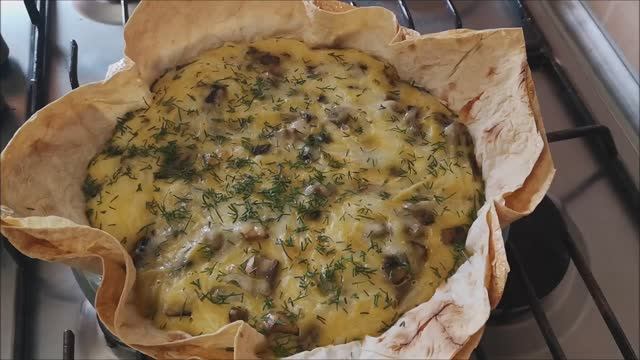 Заливной пирог с грибами в лаваше. Быстрый грибной пирог. ВКУСНО БЫСТРО и ПРОСТО!!!