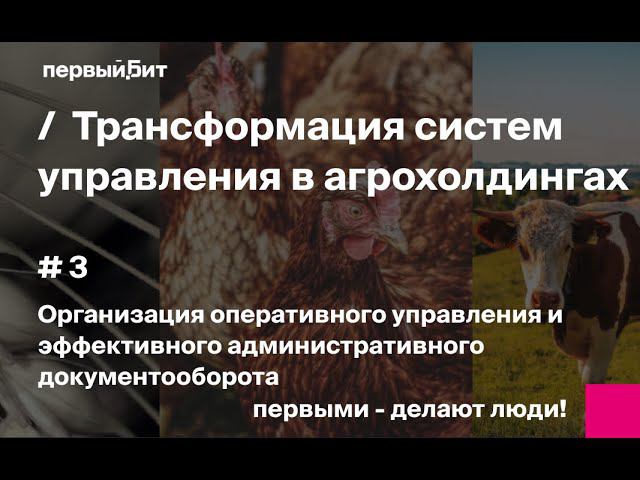 Запись вебинара "Трансформация систем управления в агрохолдингах", который провела компания "Первый Бит". Часть третья: "Организация оперативного управления и эффективного административного документооборота на примере реального внедрения в агрохолдинге". Темы третьей части: — Поддержка процессов управления и эффективной работы высшего руководства. — Ускорение процессов регистрации, выпуска и доведения до исполнителей документов. — Оптимизация документопотоков между компаниями холдинга. — Как снизить юридические и финансовые риска компании с помощью внедрения системы ДО. Спикер: Илья Сидоренко, руководитель проектов по документообороту в компании "Первый Бит" Узнать больше о документообороте: https://1solution.ru/produkty-i-uslugi/kompetentsii/avtomatizatsiya-dokumentooborota.html