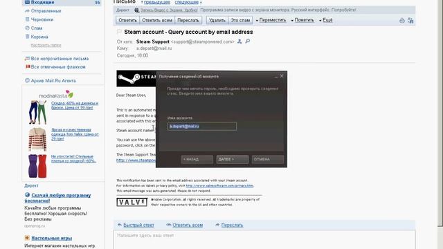 Написать в поддержку
