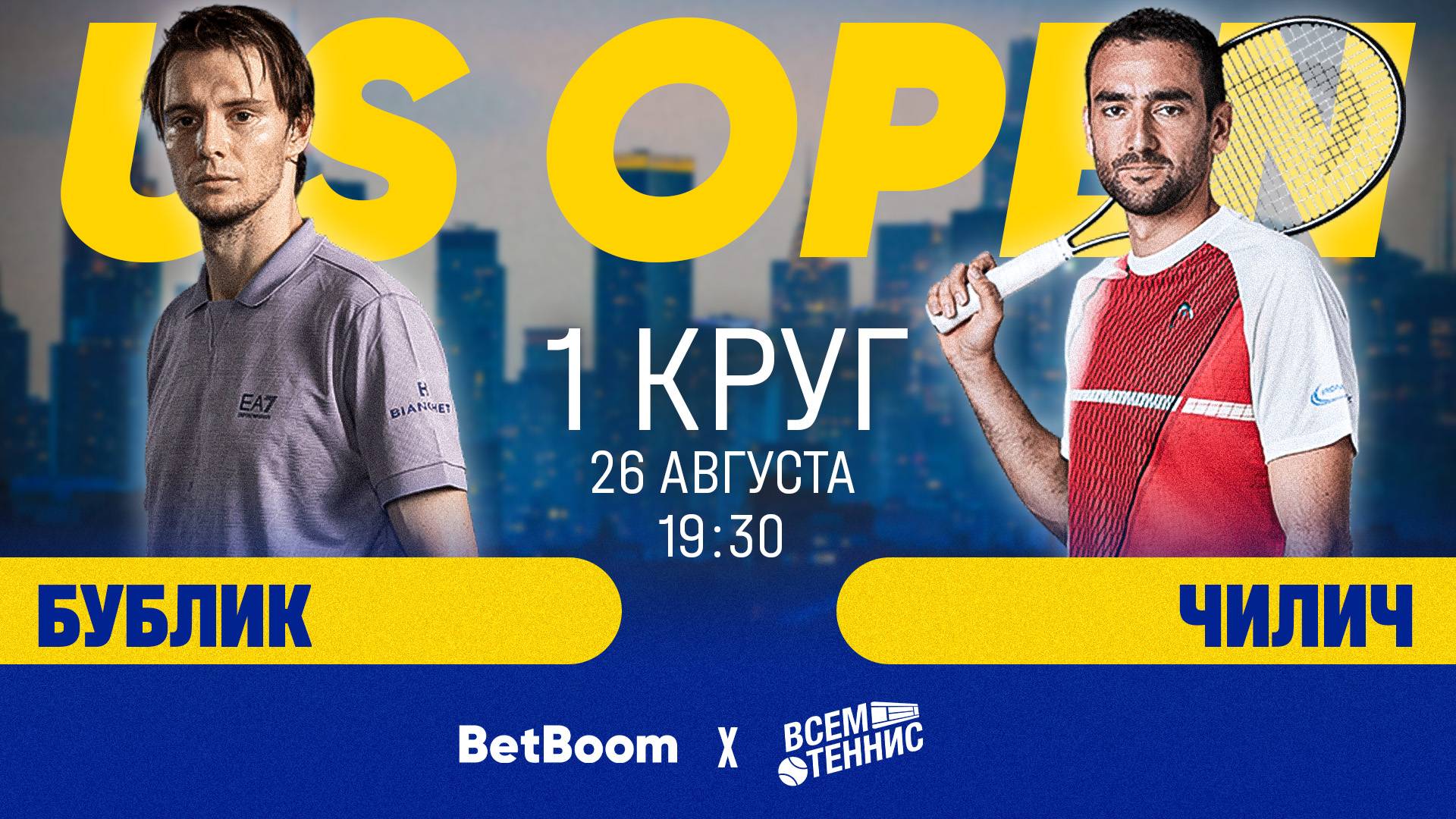 26.08.2025 | 19:30 | Бублик - Чилич | US Open | Прямая трансляция