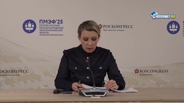 Помочь проекту: https://www.donationalerts.com/r/pavelvag Альфа-банк: 2200 1529 5129 6527 #Захарова #МИД #Россия Видео - Дипломат.Ру - https://www.diplomatru.ru/ Дзен- https://zen.yandex.ru/diplomatrutube ВК - https://vk.com/diplomatru Телеграм - https://t.me/s/borvag Рутубе - https://home.strannik-j.org/channel/24232558/ 19 июня 2025 года. ПМЭФ-2025. Брифинг официального представителя МИД России Марии Захаровой
