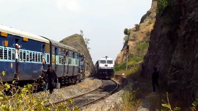 Вежливый поезд из Индии терпеливо ждет проезда своего брата