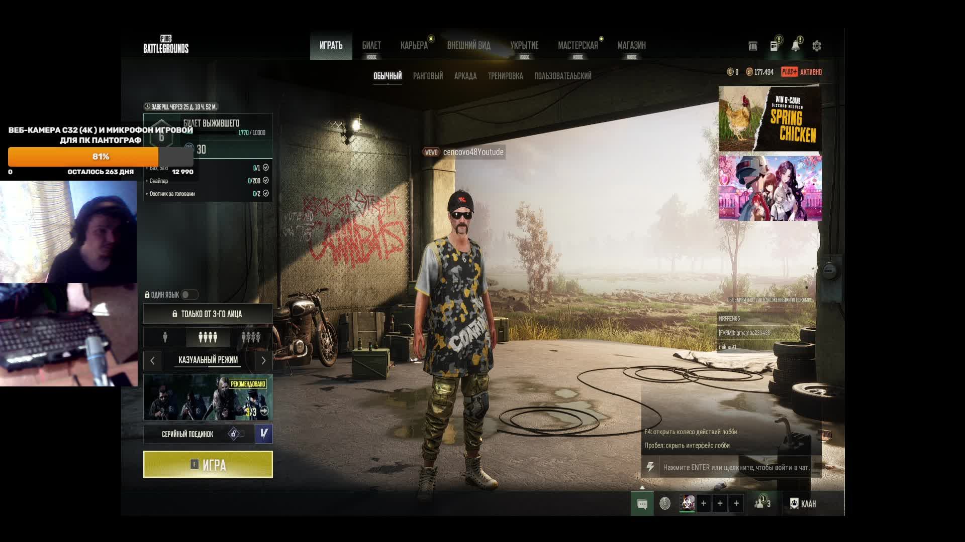 Привет! Добро пожаловать на стрим, самая большая поддержка для меня сейчас это лайк и подписка, поэтому если ты поставишь палец вверх и нажмешь на эту большую красную кнопку я буду очень благодарен мой Trovo https://trovo.live/dmitrypolyakow2010 донат https://www.donationalerts.com/r/gkqqh Группа в ка https://vk.com/public200923194 Telegram https://t.me/cencovo48 дискорд https://discordapp.com/channels/56952... ка https://vk.com/id90471262 мой кланhttps://lesta.ru/clans/wot/450150/ пк Характеристики Процессор AMD Ryzen 7 2700X Материнская плата MSI B350 TOMAHAWK Оперативная память A-Data XPG Gammix D10 [AX4U320016G16A-DR10] 32 ГБ Видеокарта GIGABYTE GeForce GTX 1070 1582MHz PCI-E 3.0 8192MB 8008MHz 256 bit DVI HDMI HDCP WINDFORCE OC rev. 1.0 Блок питания Thermaltake Москва 850W Монитор LG 29WP60G-B [29WP60G-B.ARUZ] клавиатура Defender Doom Keeper GK-100DL (45100) мышь A4Tech Bloody P81s Starlight Микрофон Trust Mico USB Microphone (20378) Веб-камера Defender C-090 Black музыкального центра LG XBOOM DM5360K наушники Sven AP-G888MV Корпус Middle Tower AeroCool "BattleHawk
